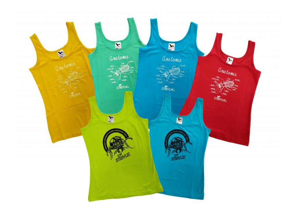 Dámské tílko Anatomie STŘEVLIKA - barva červená, tyrkysová, mátová, žlutá + 3D STŘEVLIK - barva tyrkysová, limetka
