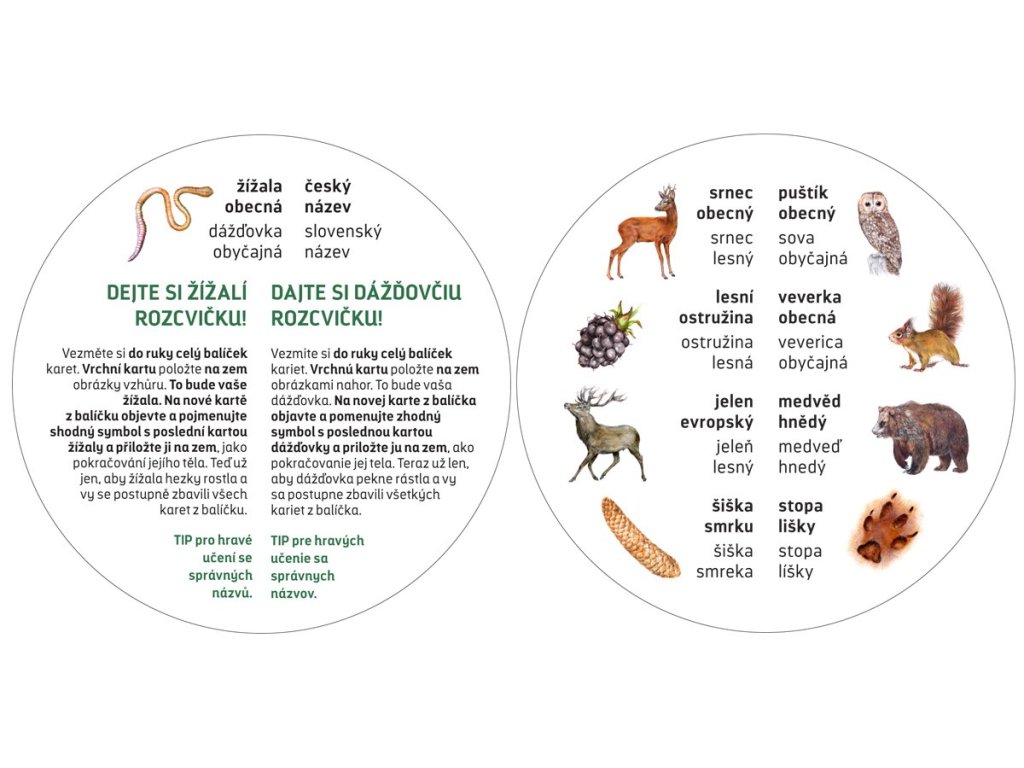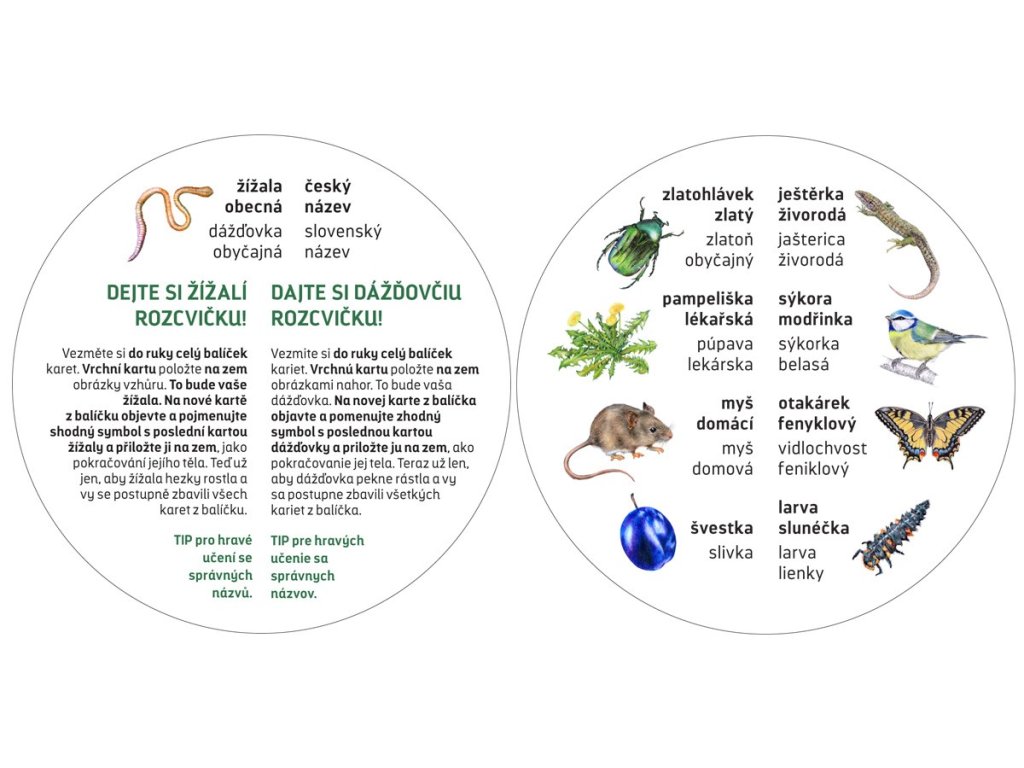 - 7 karet s obrázky a názvy ilustrací v češtině a slovenštině.
