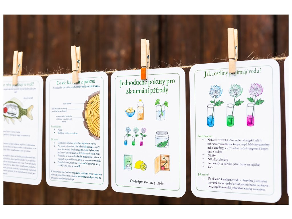 Jednoduché domácí pokusy pro zkoumání přírody jsou souborem 23 pokusů, ke kterým potřebujete pouze pomůcky, které již máte pravděpodobně doma. Nepotřebujete žádné speciální znalosti, v kartách najdete seznam pomůcek, detailní postup i vědecké vysvětlení.
