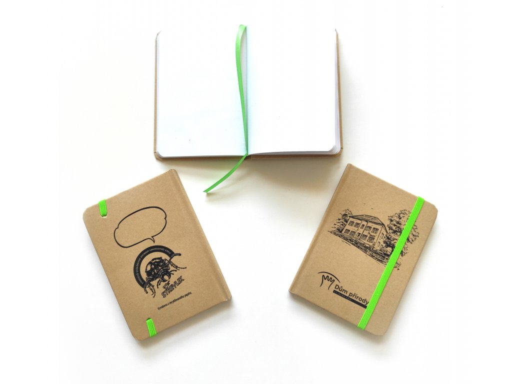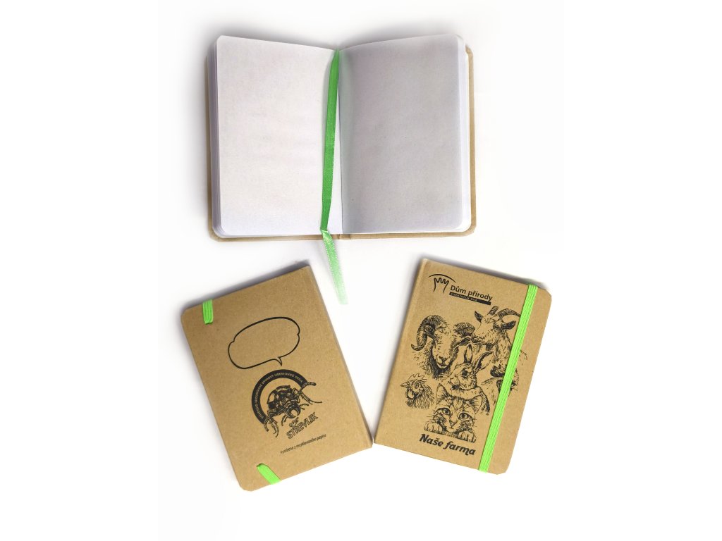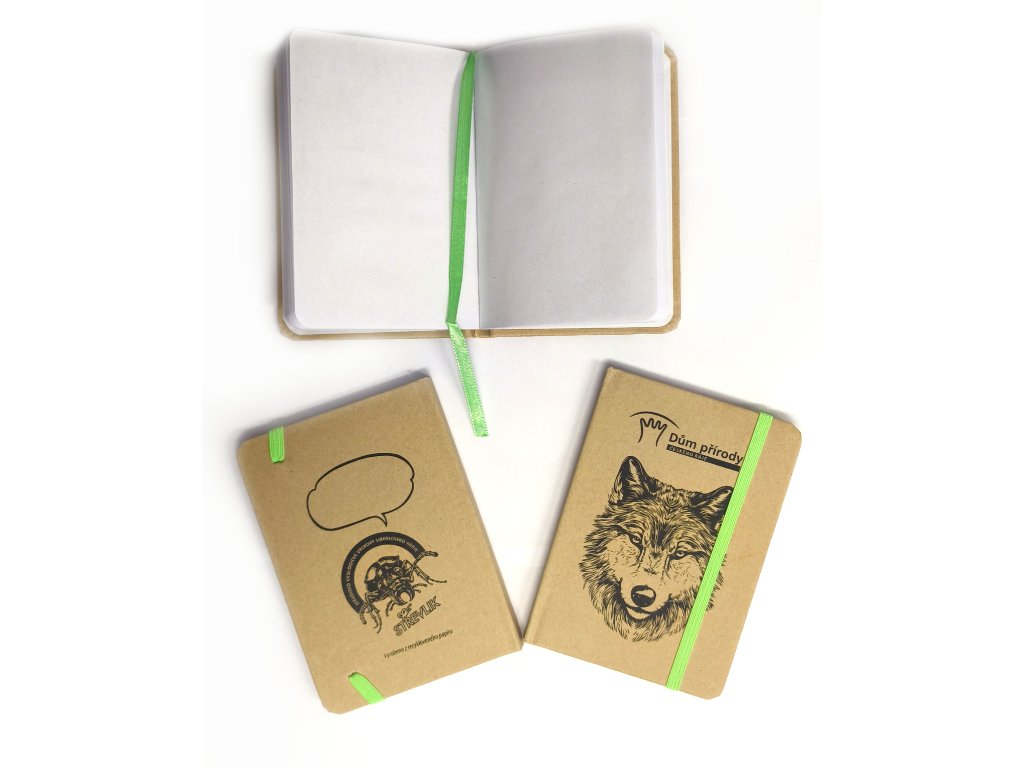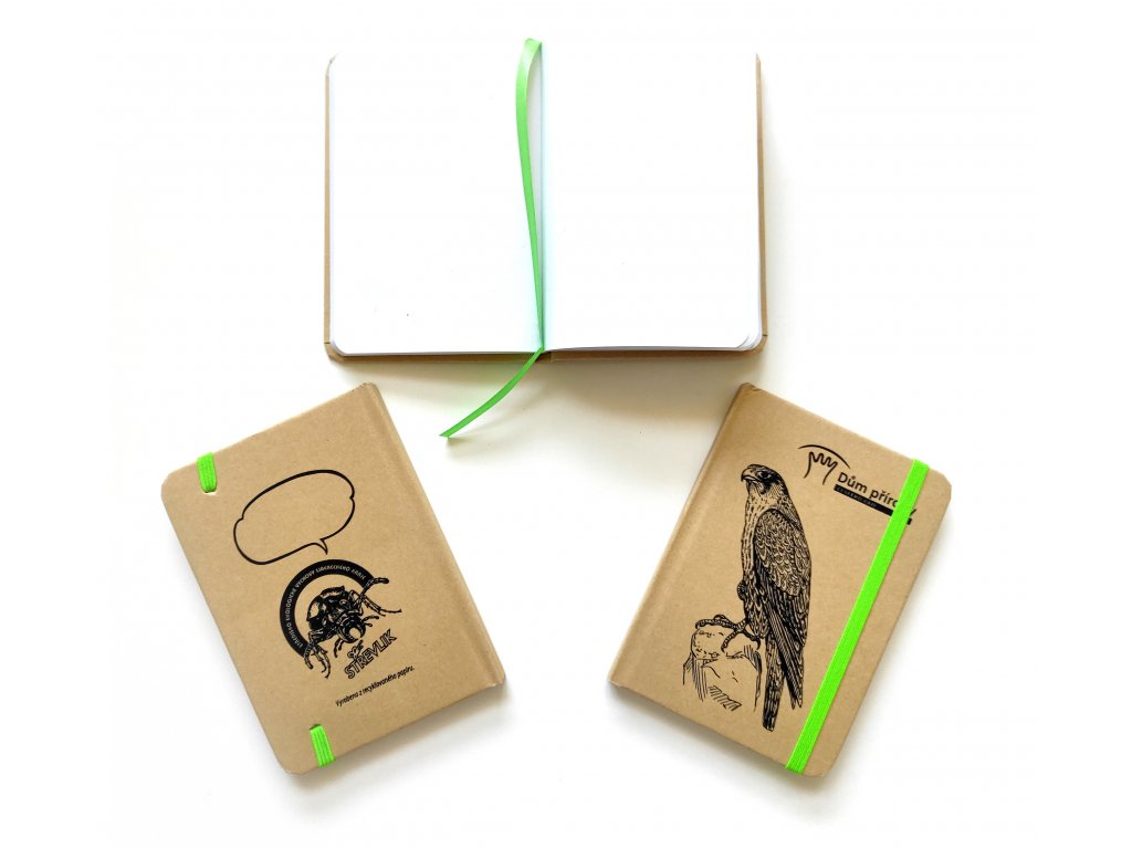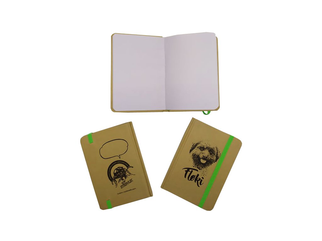 Kapesní poznámkový blok se 160 stranami bez linek z recyklovaného papíru a s tvrdými kartonovými deskami.
